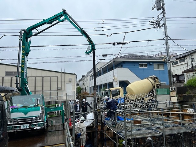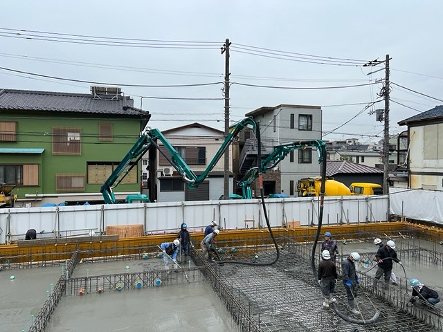 コンクリートが固まったとき、強度が必要であるためコンクリートの品質を変えることなく圧送することにテクニックが必要であり、知識や経験がものをいうポイントになる作業です。